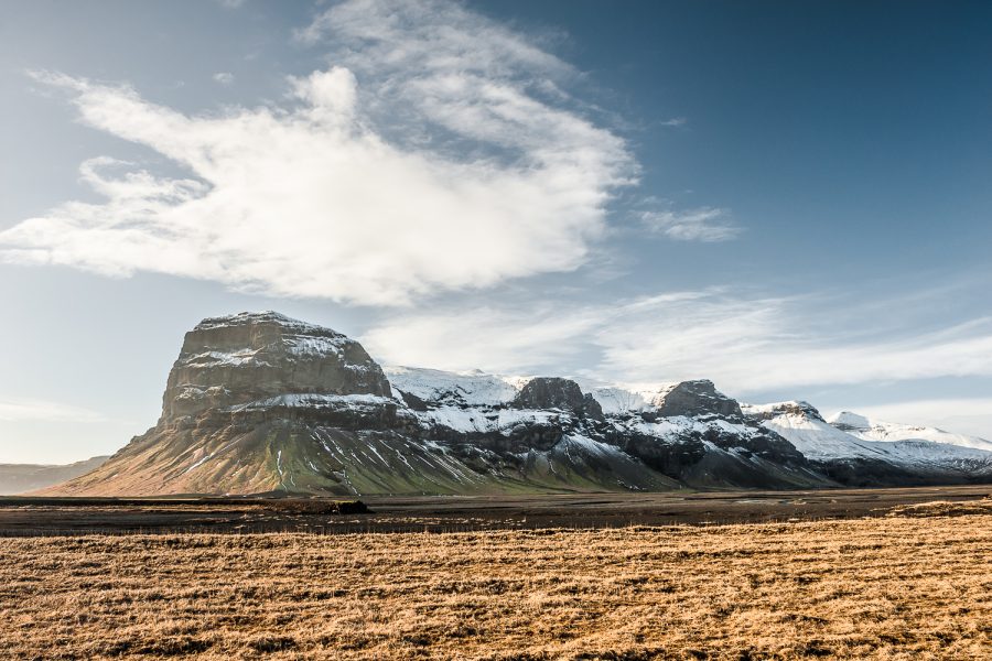 Vista de la montaña Lómagnúpur, al este de los lagos Núpsvötn en Skeiðarársandur (region de Suðurland, Islandia)