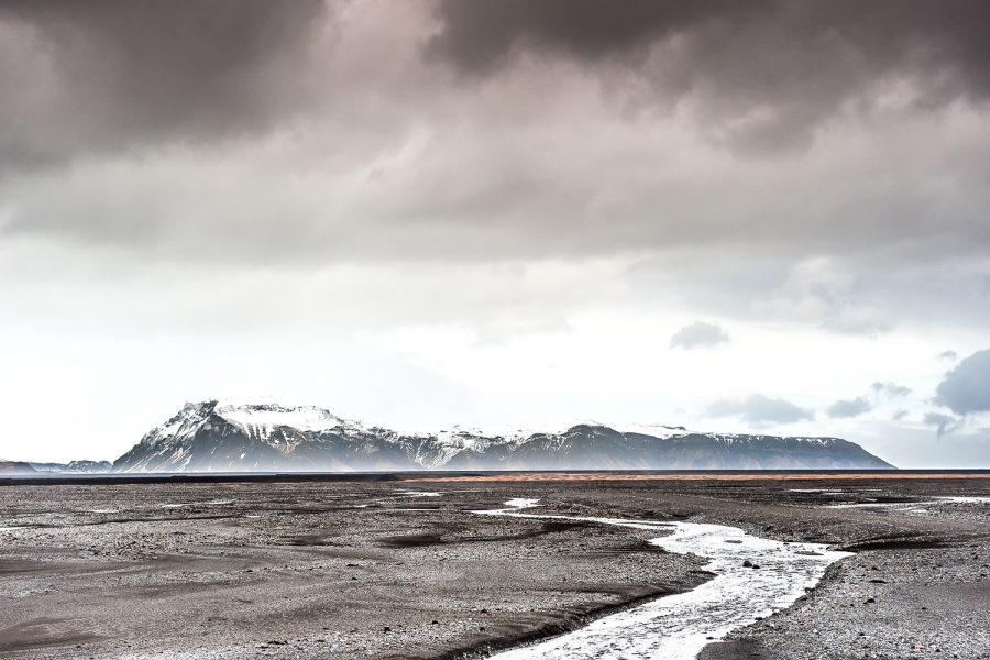 Fotografia de paisaje al paso del rio glaciar Múlakvísl por las planicies de Mýrdalssandur (region de Suðurland, Islandia)