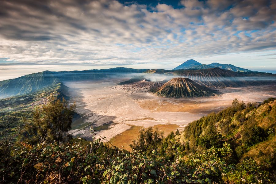 Fotografia del paisaje volcanico en la caldera del volcan Bromo, isla de Java, Indonesia