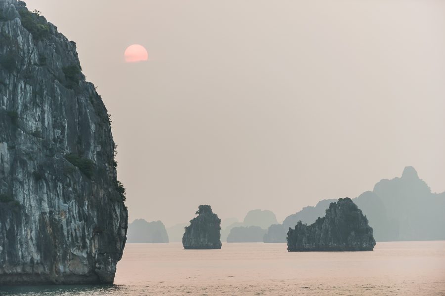 Atardecer en la bahía de Halong, Vietnam (Patrimonio de la Humanidad UNESCO)