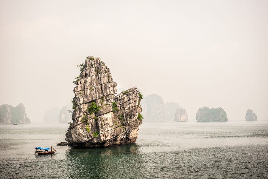Barco pesquero en la bahía de Halong, Vietnam (Patrimonio de la Humanidad UNESCO)