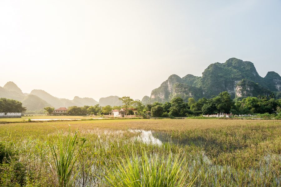 Arrozales en el paisaje karstico de Trang An cerca de Tam Coc en la provincia de Ninh Binh, Vietnam