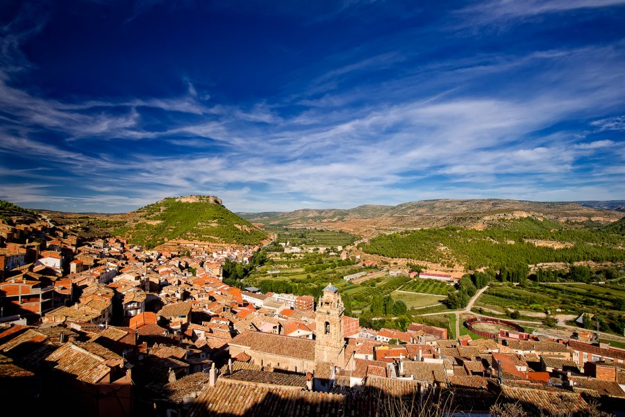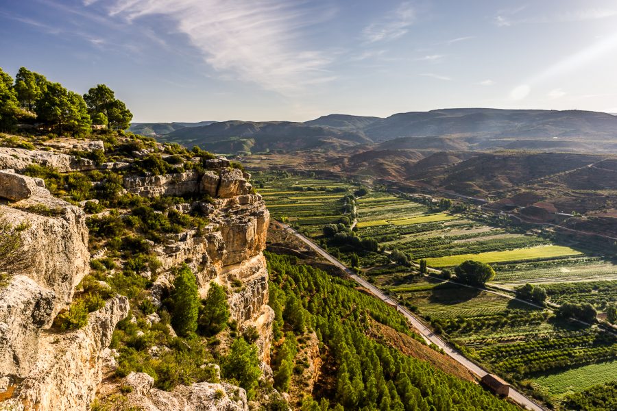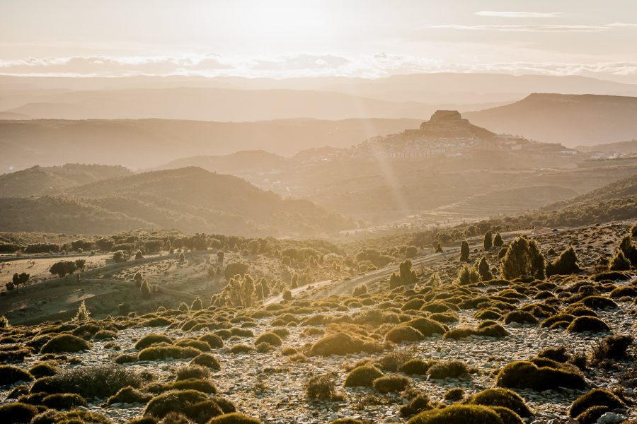 Fotografia de paisaje valenciano en la comarca del Ports con Morella al fondo, provincia de Castellon (Comunidad Valenciana)