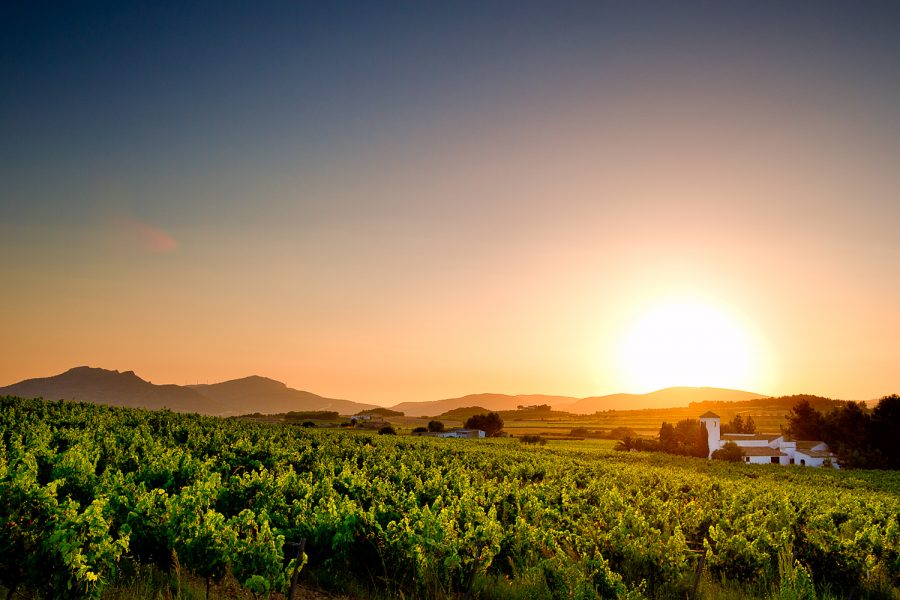 Fotografia de paisaje valenciano de viñedos en Les Alcusses, conocida como la Toscana Valenciana.