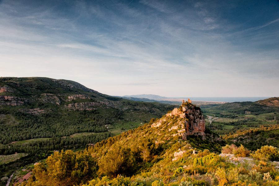 Castillo de Miravet en Cabanes, Parque natural del Desert de les Palmes, provincia de Castellón.