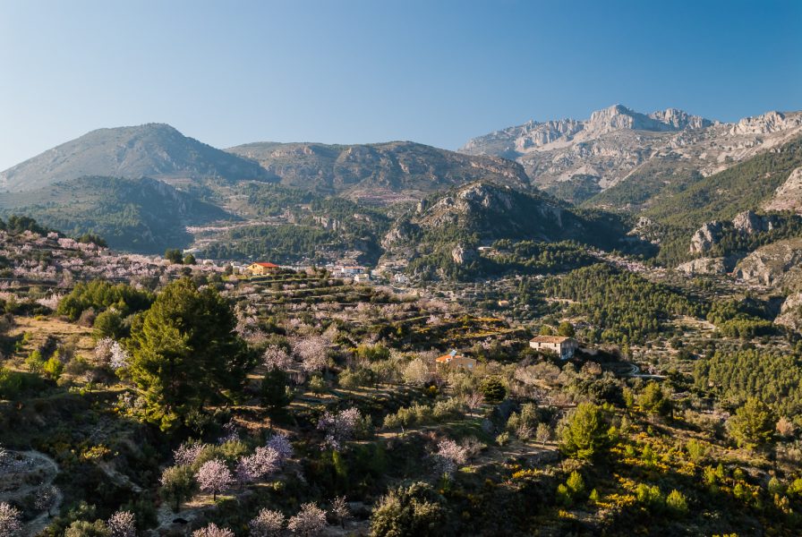 Cerezos en flor en Vall de Guadalest, provincia de Alicante.